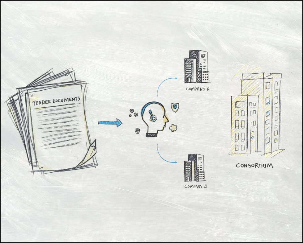 Our AI agent scans the market 24/7, identifies the right tenders for you, and connects your company with consortium partners selected in order to satisfy the requirements that your company alone cannot match. On their own, SMEs rarely qualify for high-value government contracts, as they often lack the financial capacity or the required experience in specific areas.
